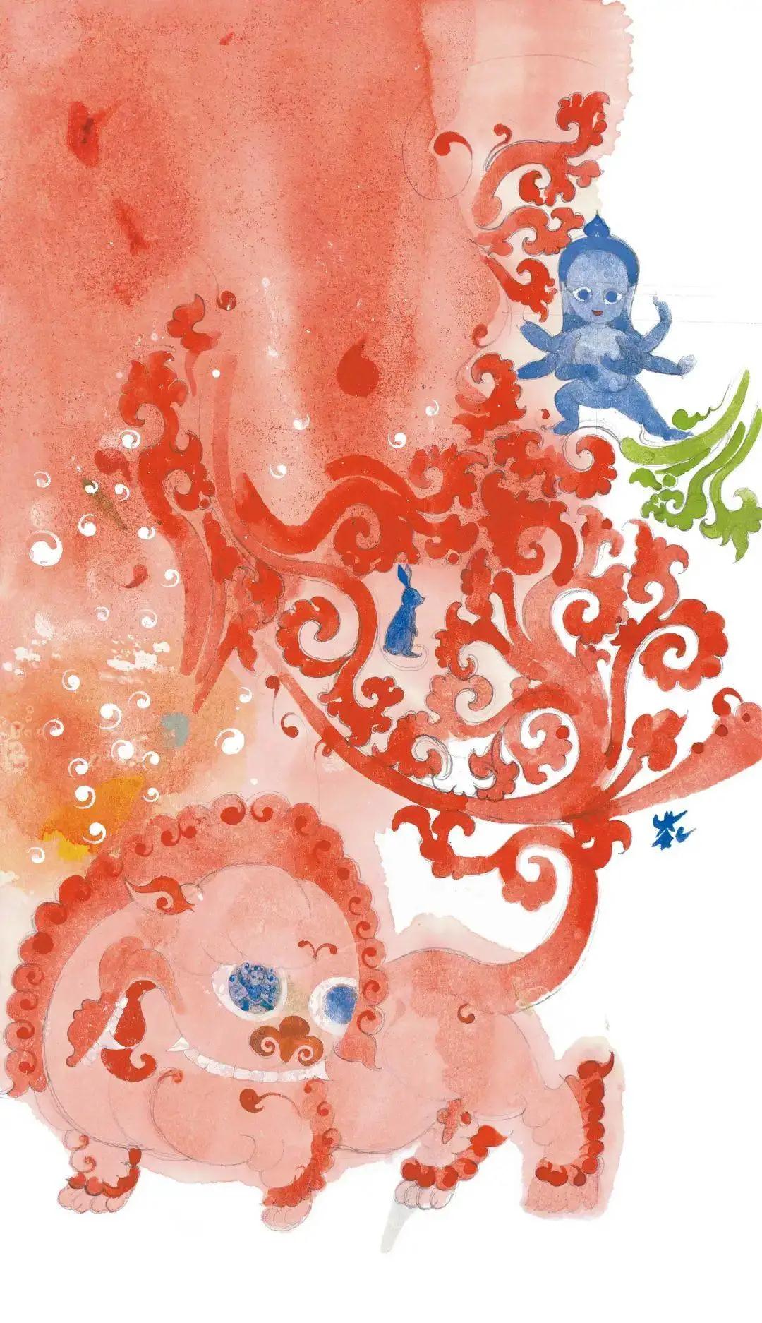 他的画浑然天成,画中的语言就像从他的内心深处流淌出来的血液那般自然,如此真诚而富有灵气。事实上,如果你开始阅读他的画,那些喜马拉雅的神佛与精灵,就会明白,这是专属芥子的表达,任何人无法替代,他的画是这个时代惊艳的印记。