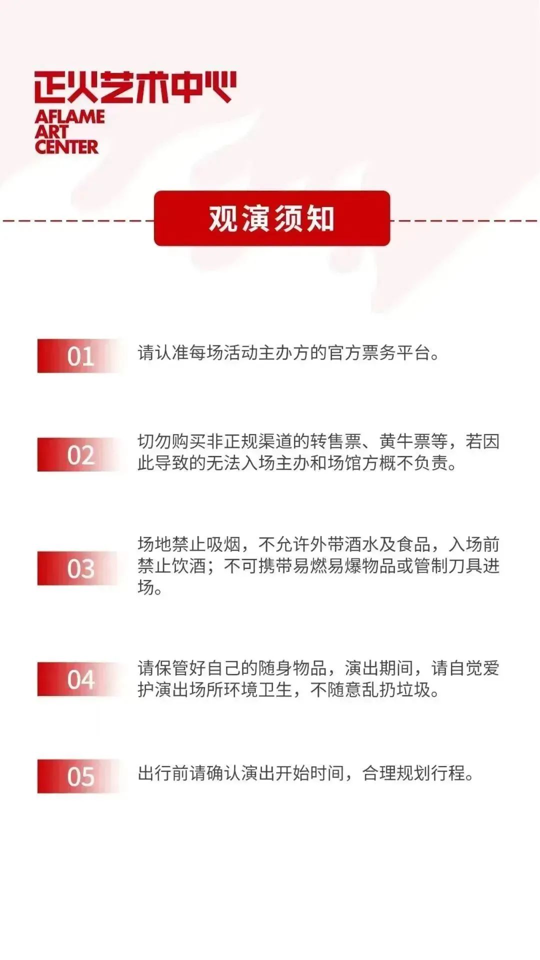 5. 为了确保您有一个愉快顺利的观演体验,在购票前请务必仔细阅读【购票须知】。具体入场需求,请参照官方平台于演出日前发布的【观演指南】。